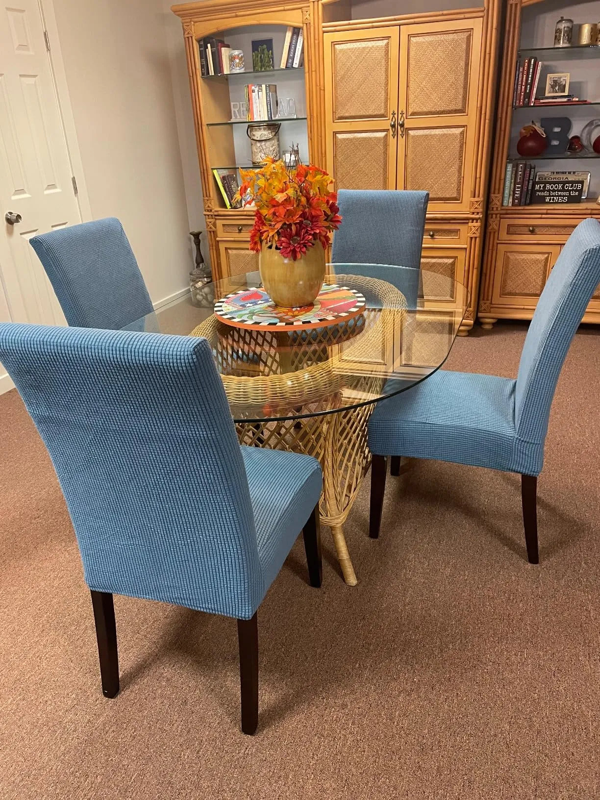 Transform your dining room instantly with StyleGuard Chair Covers. Say goodbye to embarrassment and hello to stylish, protected chairs. These covers hide scratches and stains, making your chairs look brand new without buying new furniture.